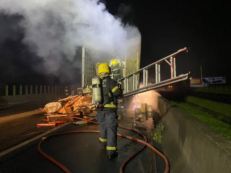 Na madrugada desta terça-feira, dia 5, por volta das 3h, um incêndio de grandes proporções atingiu uma carreta-baú que transitava pela BR-101, próximo à divisa entre os municípios de Sombrio e Araranguá, em Santa Catarina. Equipes da CCR Via Costeira, do Corpo de Bombeiros e da Polícia Rodoviária Federal (PRF) foram acionadas para controlar as chamas e garantir a segurança no local.