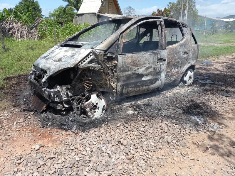 No último sábado, dia 30, por volta das 10h30min, o Corpo de Bombeiros de Sombrio foi acionado para conter um incêndio em um veículo na Rua Projetada, localizada no bairro Glorinha, em Santa Rosa do Sul.