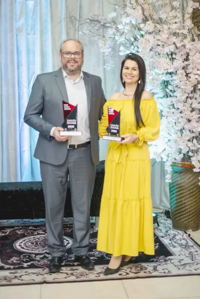 Vereador e esposa foram homenageados pelo Troféu Fama Pesquisas. Vereador Prezalino Ramos Neto, Vereador Destaque de Maracajá e sua esposa advogada Vivian Felisbino Ramos, no Destaque Advogada.