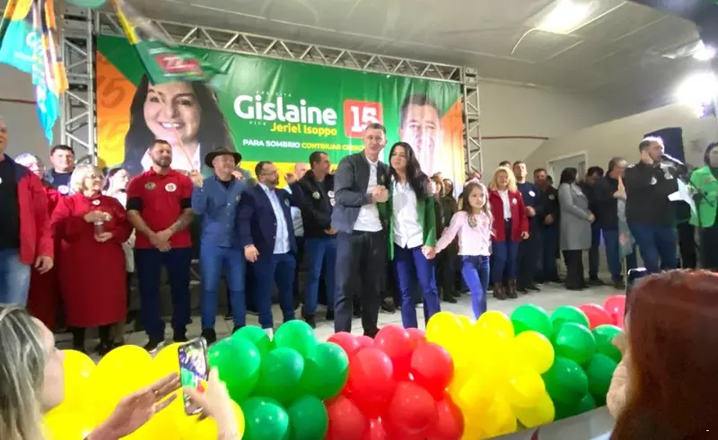Com o slogan “Para Sombrio Continuar Crescendo”, a Prefeita Gislaine Cunha e o Vice-prefeito Jeriel Isoppo lançaram oficialmente suas candidaturas para um novo mandato na Prefeitura de Sombrio. Junto com os candidatos da chapa majoritária, 36 candidatos a Vereador também lançaram seus nomes para a Câmara de Vereadores. O evento foi no sábado, no Sombrio Tênis Clube, no centro da cidade. A cerimônia de lançamento teve a presença de lideranças dos seis partidos que fazem parte da coligação: MDB, PL, PSDB, PRTB, PSB e PODEMOS, deputados estaduais e federais, dos Deputados Tiago Zilli e Giovana de Sá.