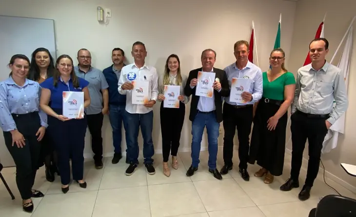 ACIF entrega cartilha, VOZ ÚNICA aos candidatos a prefeito, José Claudi Gonçalves (PSD) e Dinho Rampinelli (PL). Presidente da Associação Empresária, Isadora Arns, ressaltou a importância dos candidatos e ouvir as reivindicações dos empresários.