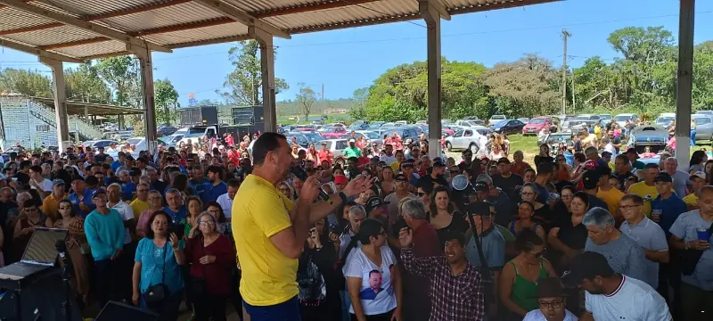 No palco, estavam sete vereadores eleitos para a próxima gestão da Câmara de Vereadores: Felipe Santos, Jaison Pereira, Josimar Borges e Dinei da Farmácia, Ita Trajano, Leonardo Dorneles, Paulinho e os presidentes dos 6 partidos da coligação.