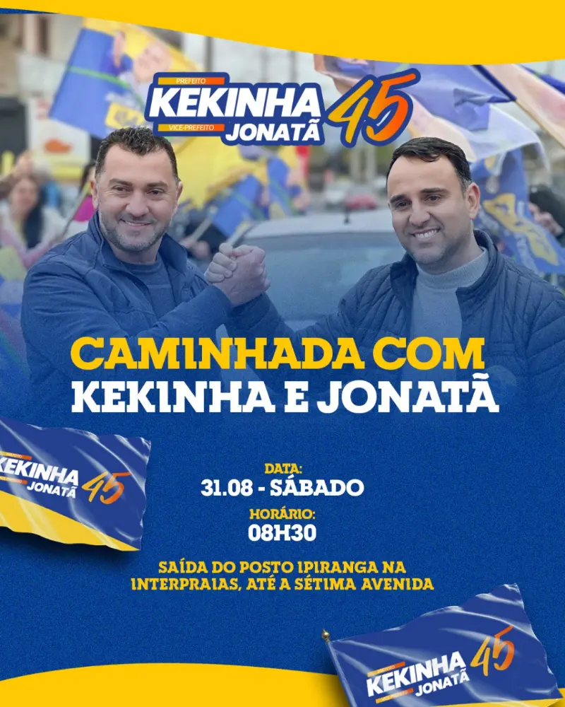 Depois do sucesso do adesivaço e abertura do comitê eleitoral de Lagoa de Fora, a dupla Kekinha e Jonatã, convocam aos candidatos a vereadores, militantes e simpatizantes para uma caminhada, neste sábado, dia 31, com início às 08h30. A concentração será no Posto Ipiranga da Avenida Interpraias.