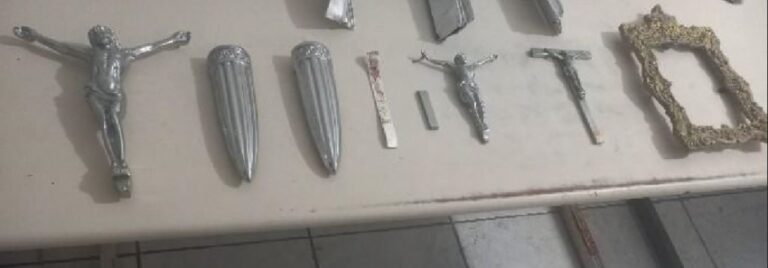 Segundo a polícia, por volta das 04h25, a guarnição foi acionada para averiguar um homem que estava no interior do cemitério carregando alguns objetos de alumínio.