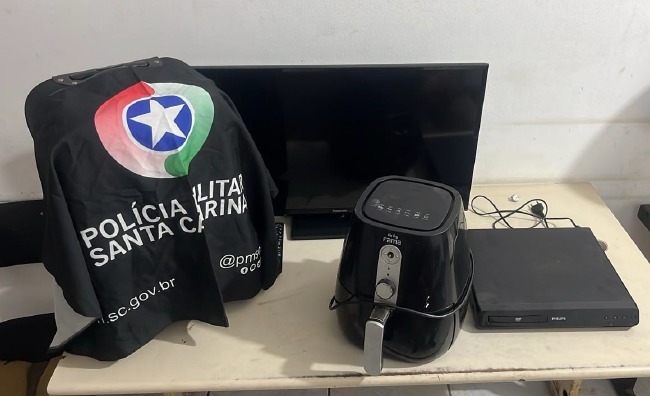 Ao abordar o indivíduo, nada de ilícito foi encontrado, no entanto, em sua mochila estavam roupas idênticas às utilizadas durante o furto. Questionado sobre o paradeiro dos objetos subtraídos, o suspeito conduziu a Guarnição até sua residência, onde foram recuperados uma TV de 32 polegadas, um Airfryer, um aparelho de DVD, uma mala contendo um secador e um cofre para moedas.