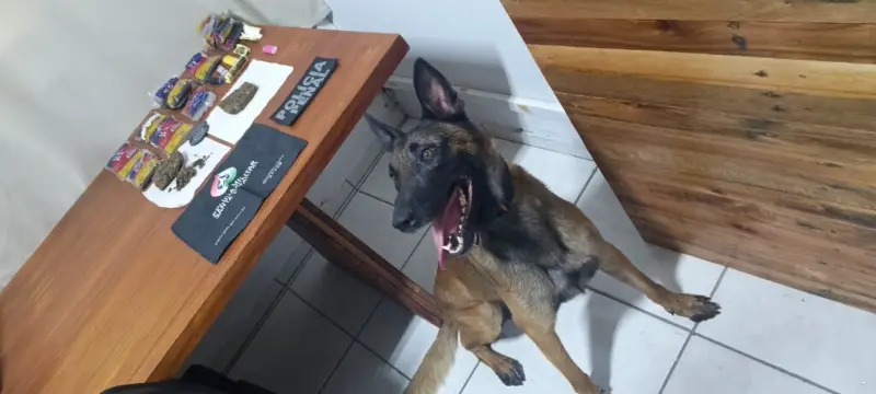 No ônibus foi empregado o cão de faro Argo, sendo encontrado por ele dentro e sob as poltronas, 170gr de maconha, 14 pacotes fumo de corda e três isqueiros. Os itens encontrados foram entregues aos policiais penais para os procedimentos cabíveis.