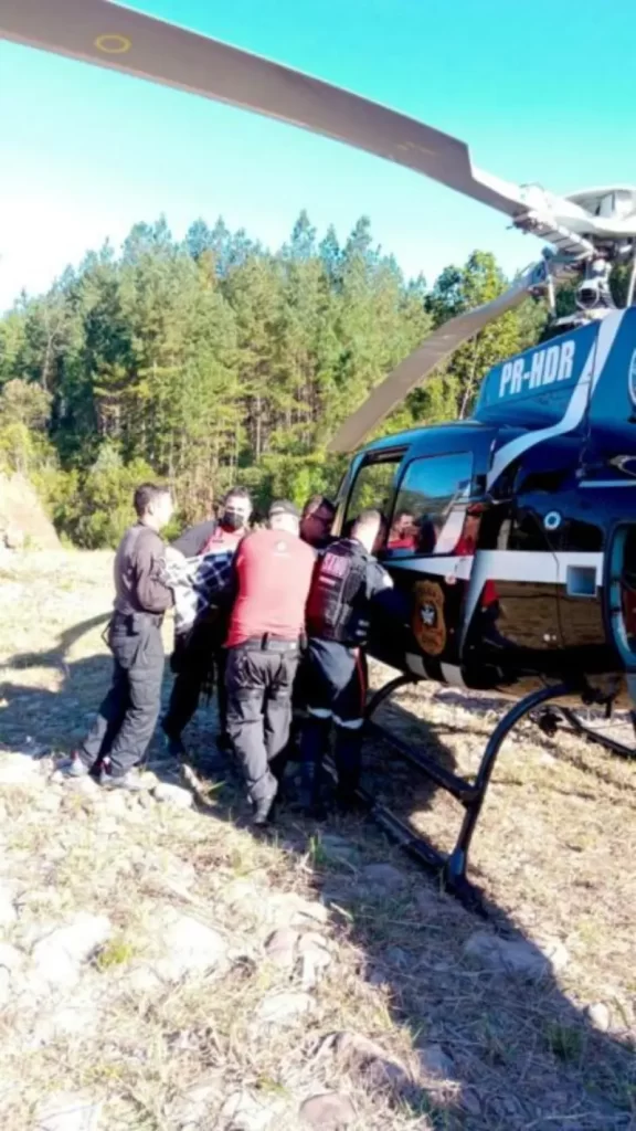A aeronave da Polícia Civil, tripulada pelos policiais do SAER, pela equipe do SARASUL foi acionada por volta das 14 horas, para prestar apoio ao SAMU.