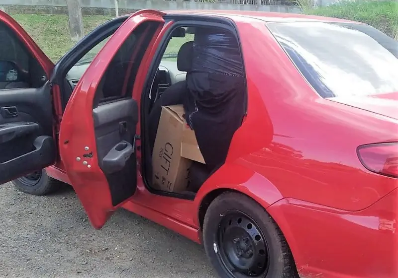 Os agentes desconfiaram de um Fiat/Siena que estava com nítido excesso de peso na parte traseira do veículo, placas de Tramandaí/RS. Todo o porta-malas e bancos dos passageiros estavam com caixas de cigarros até o teto, escondidas por um plástico preto.