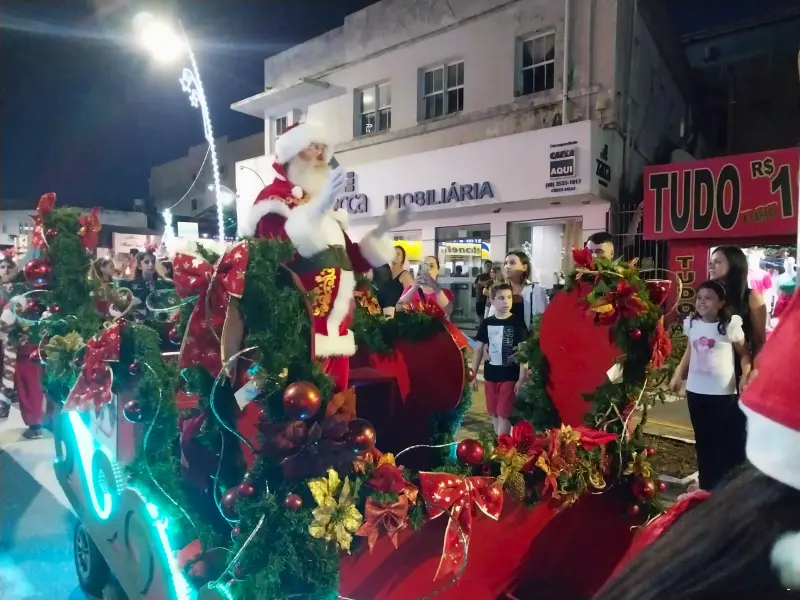 O Desfile acompanhado de perto por milhares de pessoas, teve o trenó puxado por bicicletas vermelhas como uma das grandes atrações da noite, em especial para os pequenos, encantados com o Papai Noel.