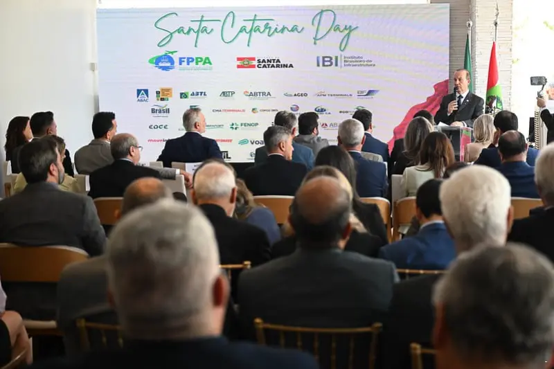 O governador Jorginho Mello participou nesta terça-feira, 27, em Brasília, do “Santa Catarina Day”. O evento, promovido pela Frente Parlamentar Mista de Portos e Aeroportos (FPPA) e o IBI (Instituto Brasileiro de Infraestrutura), reuniu especialistas e autoridades para discutir os desafios e avanços na infraestrutura de transportes.