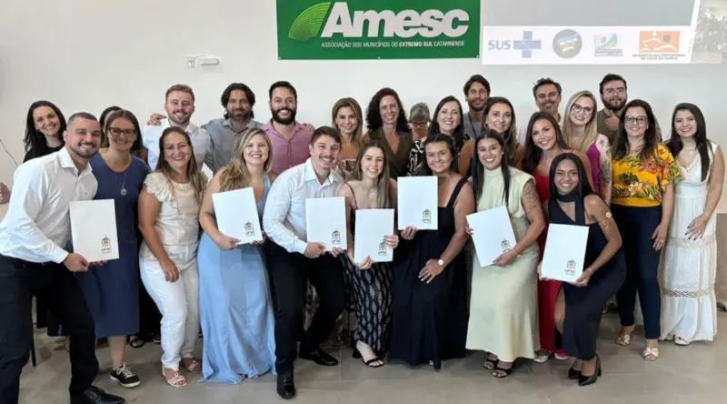 A Secretária de Saúde de Araranguá, Daiane Biff acompanhou, na última sexta-feira, dia 27, da solenidade de conclusão da turma 2024/2026 do Programa de Residência Multiprofissional em Saúde da Família – Polo Extremo Sul, realizada no auditório da AMESC.