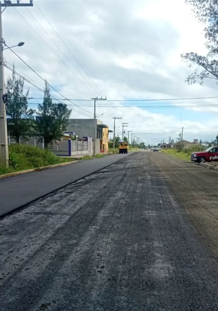 O que já avançou: 500 metros de asfalto novinho concluídos e Mais 500 metros de base prontos para receber a pavimentação.