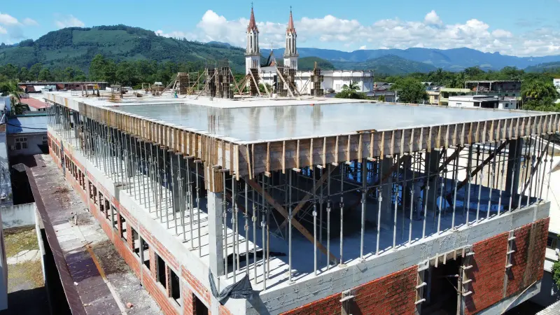 Em menos de um ano as obras de ampliação do Hospital Nossa Senhora de Fátima avançaram para o último pavimento da nova ala psiquiátrica. Já foi realizada a concretagem da última laje, no terceiro andar. Estão sendo feitas as instalações hidráulicas, alvenaria e gesso. Os trabalhos começaram em março de 2023 e o prédio deve ser inaugurado até o final deste ano.