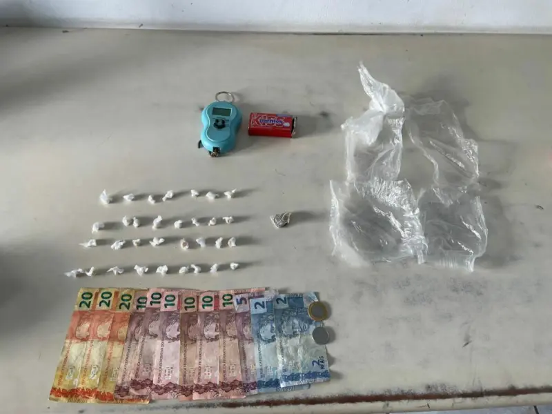 A Polícia Militar prendeu um dos homens que estava com R$ 130,50 em espécie, uma pequena porção de maconha e um pequeno recipiente com forte odor de crack. No local em que os policiais avistaram o suspeito entrar e sair algumas vezes, em um carreiro, foram encontradas 32 pedras de crack embaladas e prontas para venda.