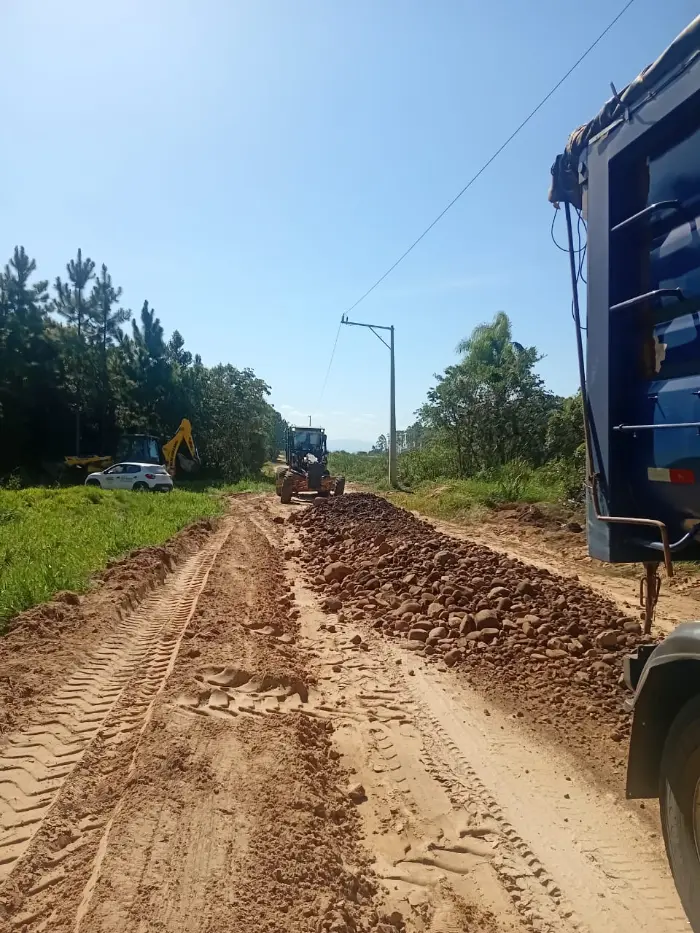Os prefeitos de Balneário Gaivota, Everaldo dos Santos, Kekinha e de Passo de Torres, Valmir, com a devida autorização das câmaras de Vereadores, estão viabilizando a pavimentação com seixo rolado da estrada que faz ligação entre as comunidades de Estiva dos Rodrigues e Lagoa da Tapera.