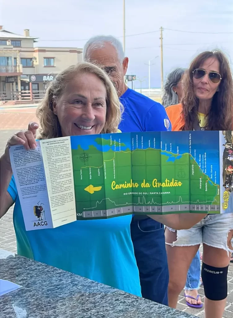 Em Balneário Arroio do Silva os participantes do Caminho da Gratidão foram recepcionados pela secretária de turismo Itaionara Recco, pelo diretor de turismo Marcelino Conforti, pela diretora de cultura Renata Cardoso, e pelo diretor de indústria e comércio Everson Inocêncio.