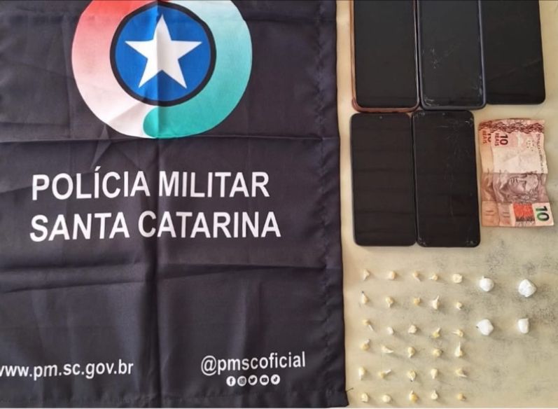 Ao abordar o veículo, que estava ocupado por seis pessoas, a PM procedeu com a identificação e revista dos indivíduos. Nada foi encontrado com os suspeitos, mas ao realizar uma busca no interior do carro, os policiais localizaram drogas no porta-malas. Foram apreendidas quatro buchas de cocaína, totalizando 2,1 gramas, além de 30 pedras de crack, pesando 3,3 gramas, e a quantia de R$ 20 reais em espécie.
