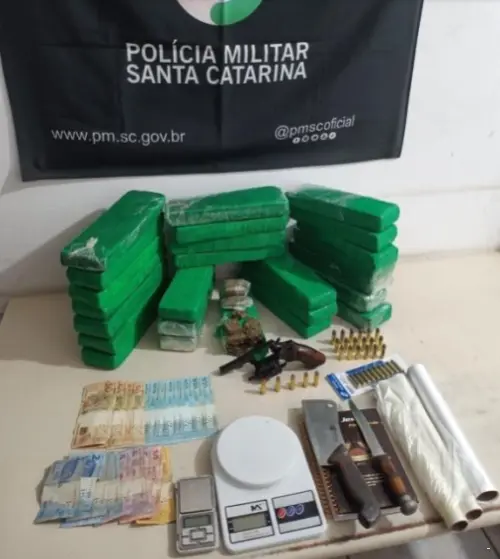 No início da noite de terça-feira, dia 28, a Polícia Militar de Araranguá apreendeu em uma residência no bairro Arapongas, mais de 16kg de maconha, um revólver calibre 38, munições e aproximadamente R$ 1.000 reais em dinheiro.
