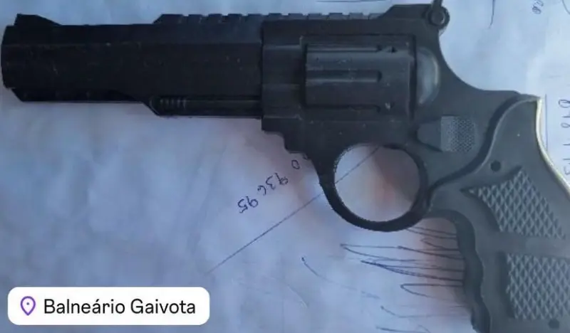 Na manhã desta terça-feira, dia 22, por volta das 11h15, a Polícia Militar de Balneário Gaivota apreendeu um simulacro de arma de fogo. O incidente ocorreu na Rua dos Imigrantes, em frente ao Colégio Estadual, após uma denúncia informar que dois jovens estariam manuseando uma arma no local.