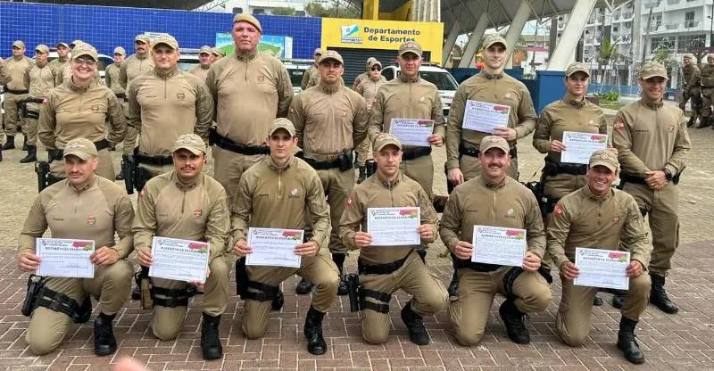 Durante a solenidade, que foi realizada na Praça Central de Balneário Arroio do Silva, dez policiais militares foram homenageados em face das atuações destacadas de cada um durante o policiamento nas áreas litorâneas da região da Amrec e Amesc, incluindo atendimento de ocorrências de salvamento, apreensão de armas, drogas, recuperação de veículos e corrupção.
