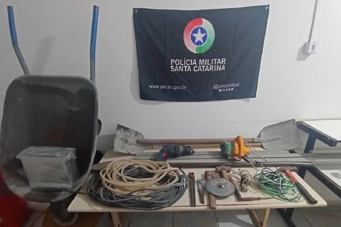 Na madrugada desta quinta-feira, dia 18, por volta das 00h08 a Polícia Militar de Araranguá efetuou a prisão de um homem de 28 anos por furto consumado. O indivíduo, que já estava sendo monitorado por tornozeleira eletrônica devido à quebra de regra de monitoramento (fuga), foi surpreendido em flagrante carregando um carrinho de mãos repleto de ferramentas.