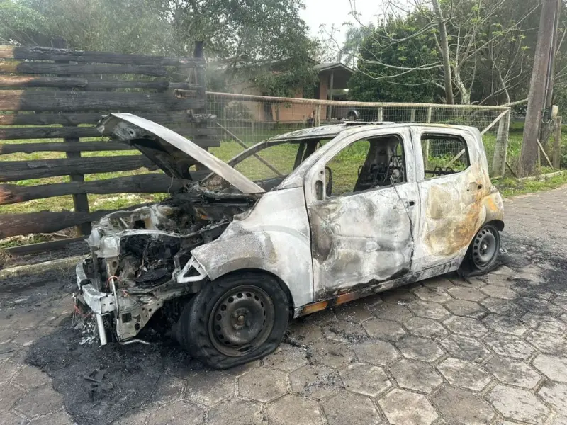 Por volta das 06h desta quarta-feira, dia 11, a Polícia Militar foi acionada para atender uma ocorrência onde um veículo foi abandonado e incendiado na Estrada Geral do bairro Caverazinho, em Araranguá.