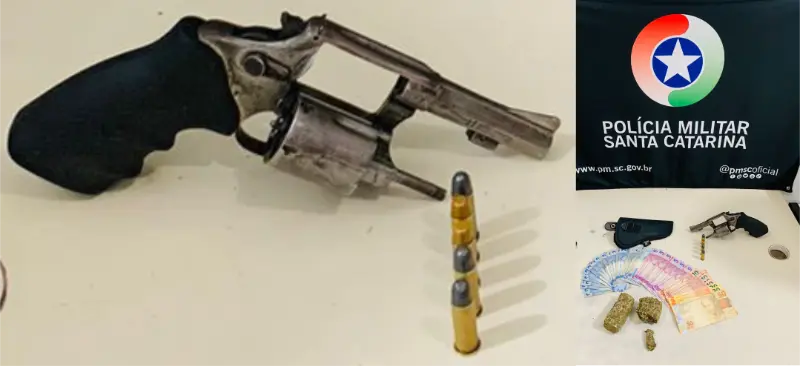 Diante dos fatos, a arma de fogo, as munições e as drogas foram apreendidas, e o indivíduo recebeu voz de prisão. Ele foi conduzido à Central de Plantão Policial de Araranguá, onde serão realizados os procedimentos legais cabíveis.