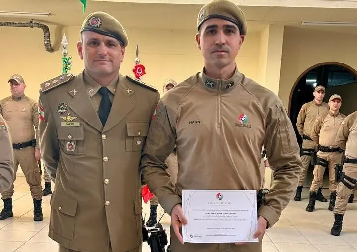 Por fim, o Cabo Robson Gomes Hahn recebeu o certificado pela premiação Valorem – Regional, um programa de reconhecimento do mérito profissional do policial militar que se destaca nas atividades de polícia ostensiva e de preservação da ordem pública.