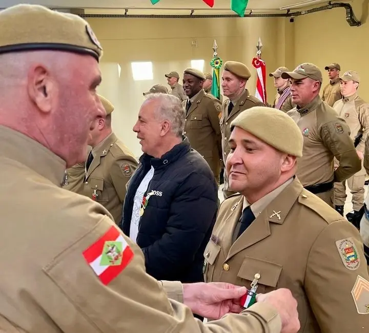 Na segunda-feira, dia 26, o 6º Comando Regional de Polícia Militar realizou a solenidade alusiva ao dia do soldado, que é comemorado no dia 25 de agosto. Na ocasião, o comandante do 19º Batalhão de Polícia Militar, tenente-coronel Marcelo Bertoncini Zanette, recebeu a medalha comemorativa do 9º BPM. Além disso, o comandante do grupo destacado de Polícia Militar de Santa Rosa do Sul, 1º Sargento Demian Santana da Lapa, foi condecorado com a moeda comemorativa do 6º CRPM e o 3º Sargento Samuel de Souza Cesário com a medalha por tempo de serviço – 20 anos.