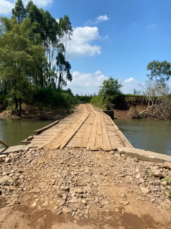 A ponte de Vila São José foi parcialmente interditada por questões de segurança, de acordo com orientações da Defesa Civil. A medida visa garantir a segurança dos usuários, uma vez que a ponte se encontra em estado crítico de risco.