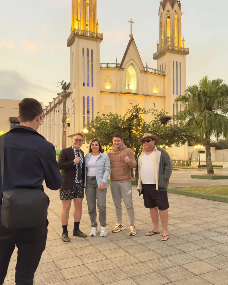 No último domingo, 6 de julho, os influenciadores digitais “Gustavo Pórco” e “Lauro Antigo”, personagens do canal de humor Indavírus e nomes em ascensão nas redes sociais de Santa Catarina, estiveram em Praia Grande-SC para conhecer e divulgar os principais atrativos turísticos do município. A visita faz parte de uma ação conjunta entre a Secretaria de Turismo do Estado, a Prefeitura de Praia Grande por meio da Secretaria Municipal de Turismo e o setor turístico local, com o objetivo de fortalecer a imagem da cidade como destino de natureza, aventura e ecoturismo.