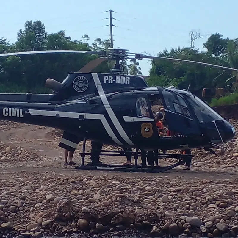 Presença do helicóptero do SAER SARASUL chama a atenção dos moradores neste domingo
