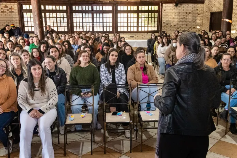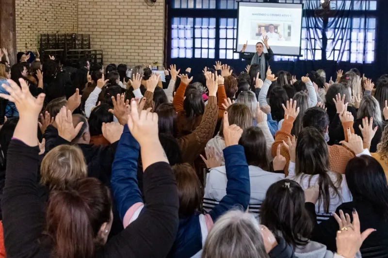 Pela primeira vez, todos os profissionais da educação municipal participaram da formação, incluindo professores da educação infantil e do ensino fundamental, além de zeladoras, cozinheiras e demais colaboradores, cujo trabalho é essencial para o funcionamento diário das escolas.