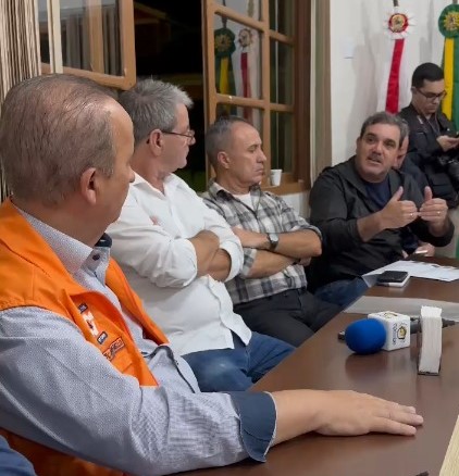 Prefeito Almides Roberg da Rosa, de Santa Rosa do Sul, durante visita do governador Jorginho Mello a Praia Grande neste sábado, 4 de maio, fez um alerta e dois pedidos em nome da região, com o intuito de reduzir prejuízos a centenas de agricultores.
