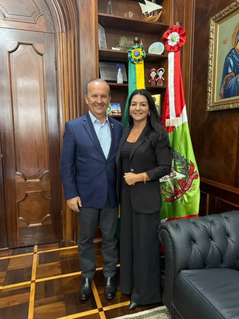 Em agenda com o governador Jorginho Mello, a prefeita de Sombrio, Gislaine Cunha, deu início ao planejamento estratégico para o novo mandato no município. Durante o encontro, realizado na tarde de ontem, dia 18, foram abordados pleitos prioritários para o desenvolvimento municipal e regional, com foco em ações integradas no âmbito da Associação dos Municípios do Extremo Sul Catarinense (AMESC), da qual Gislaine é a nova presidente.