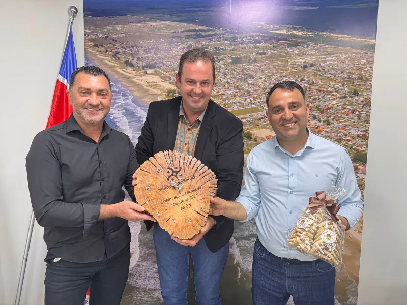 O Prefeito Everaldo dos Santos, Kekinha e o Vice-prefeito Jonatã Coelho, de Balneário Gaivota, receberam em seu gabinete na manhã desta segunda-feira, 13 de outubro, o Prefeito Fábio Alex Mertz, da cidade de Marques de Souza (RS).