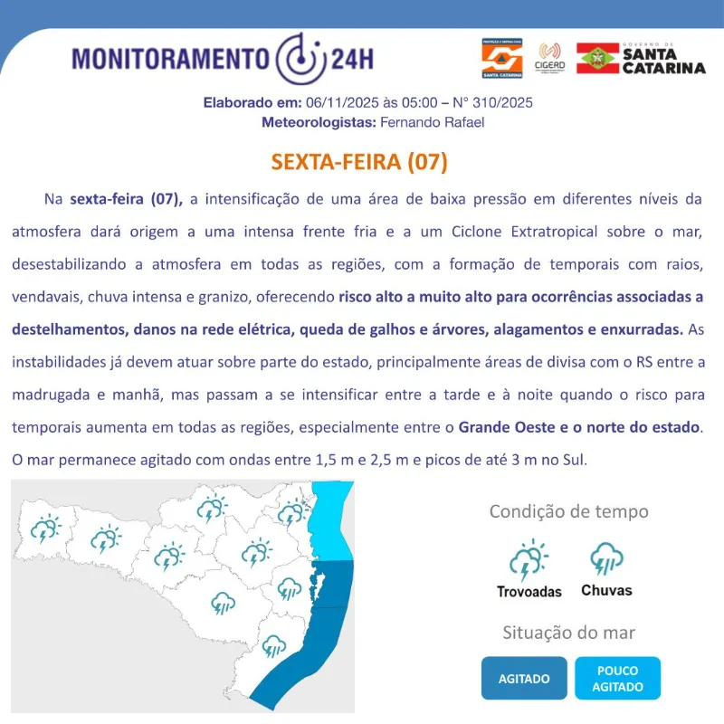 Tendo em vista o Boletim da Defesa Civil de SC, dando conta de que entre esta sexta-feira (07) e o sábado (08) o processo de formação de um ciclone extratropical em alto mar, entre a costa do Sul e do Sudeste do Brasil, favorece o desenvolvimento de temporais com vendaval, chuva intensa, raios e queda de granizo em todo o estado de Santa Catarina, o Prefeito em Exercício de Balneário Gaivota, Jonatã Coelho, reuniu-se com todos os secretários e membros da Defesa Civil, para definir medidas diante da situação.