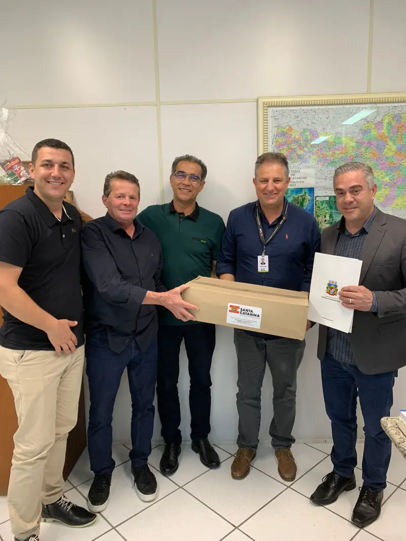 O prefeito Paulo Della Vecchia, Vice-prefeito Edson Zauer Leonardo, acompanhados dos secretários de Obras, Jessé Inácio Vieira e de Agricultura João Borges estiveram na capital do estado, onde visitaram a Secretaria de Agricultura e Pesca do Governo do Estado. “Na oportunidade, fomos muito bem atendidos pelo Chefe de Gabinete, João Carlos Ecker, onde apresentamos as demandas do município e que serão levadas até o secretário Valdir Colatto. Com certeza em breve colheremos frutos para os agricultores do município”, destacou o prefeito Paulinho. Em retribuição pela visita, a comitiva ermense foi presenteada com uma caixa de sementes pelo Chefe de Gabinete da Secretaria de Agricultura e Pesca de SC.