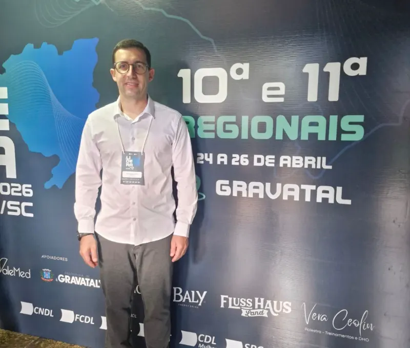 O presidente da Câmara de Dirigentes Lojistas (CDL) de Sombrio, Marcos Cardoso, esteve presente no evento Lídera FCDL/SC – 10ª e 11ª Regionais, realizado entre os dias 24 e 26 de abril de 2026, em Termas do Gravatal, no Sul do Estado.