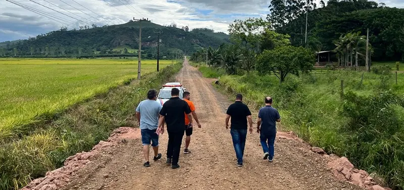 Em menos de uma semana, Santa Rosa do Sul recebeu a visita de engenheiros e coordenadores da Defesa Civil de dois municípios, Forquilhinha e Gravatal, para conhecer como estão sendo executados os projetos de cabeceiras para a implantação dos kits de transposição destinados pela Secretaria de Estado da Proteção e Defesa Civil.