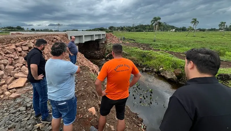 Acompanhado de um secretário, engenheiros e coordenador municipal de Defesa Civil, Marcos foi recebido pelo prefeito Almides Roberg da Rosa em seu gabinete, juntamente com Higor Pereira, coordenador da DC local.