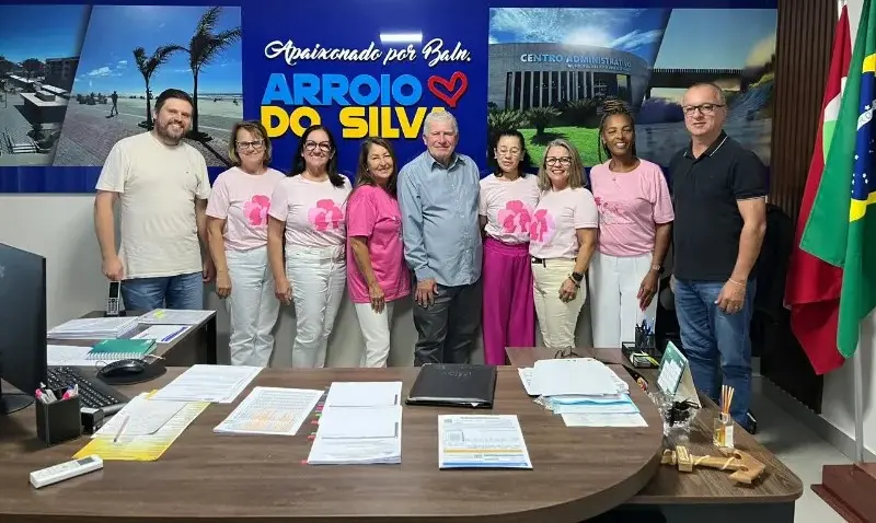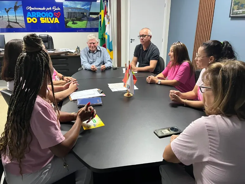 Grupo da diretoria da Rede Feminina de Combate ao Câncer de Balneário Arroio do Silva, formada por voluntárias, participou de reunião na tarde de sexta-feira (10), no gabinete do prefeito Jorge Luiz Freitas.