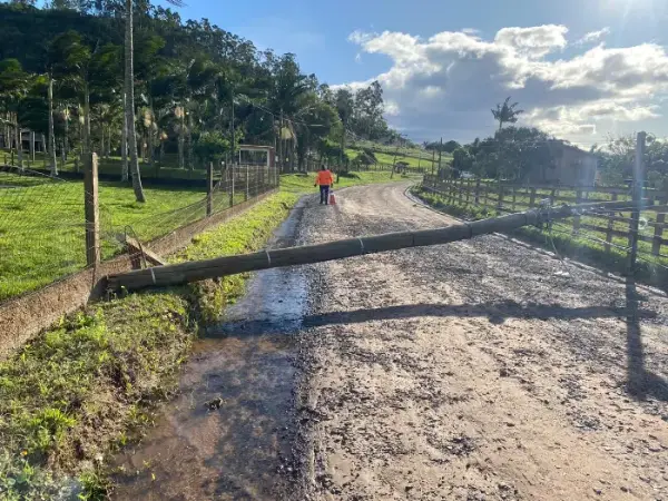 Postes caídos sobre vias nas comunidades de Vila Bitencourt, Pontão, Peroba, Sanga da Areia, Vila Nova, Parque Rosita e Centro.
