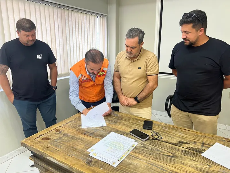 Um dos municípios referência no processo de construção de cabeceiras para a implantação de kits pontes, Santa Rosa do Sul está dando continuidade aos trabalhos de mitigar danos causados por alagamentos. Na tarde desta segunda, foi realizado ato solene para assinatura de ordens de serviço para quatro novos projetos. “Com a parceria da Defesa Civil estadual, vamos conseguir instalar mais quatro pontes de concreto, trazendo tranquilidade para estas comunidades”, comemora o prefeito Almides Roberg da Rosa que, juntamente com o vice-prefeito Pedro D’Ávila da Cunha e do coordenador municipal da DC, Higor Pereira, recepcionou André Espezim, chefe de gabinete da Secretaria de Proteção e Defesa Civil de Santa Catarina.