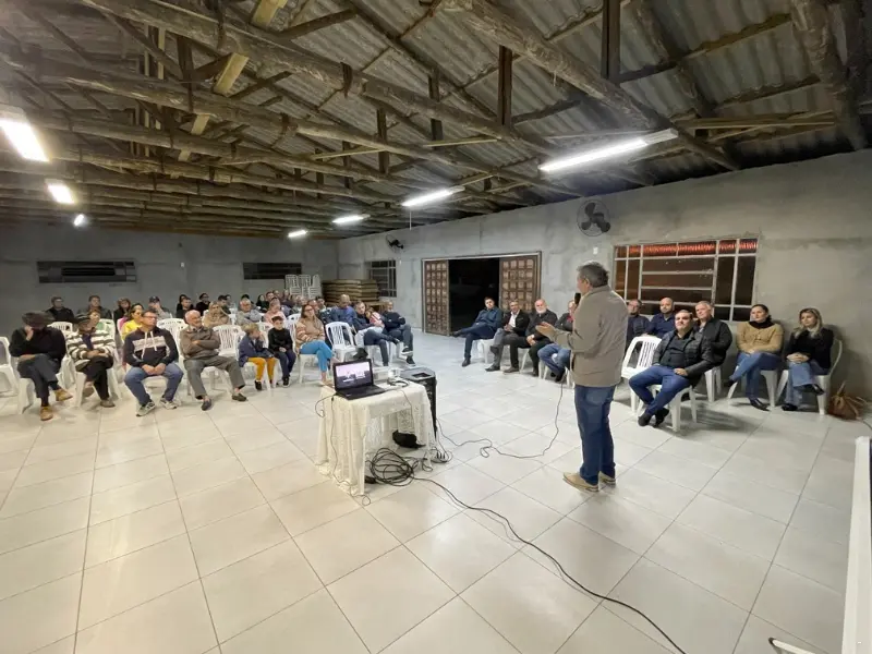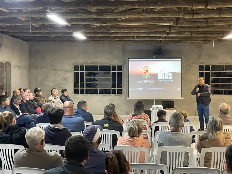 Moradores de Caramujo, localizada no lado leste de Santa Rosa do Sul, se reuniram no salão comunitário para acompanharem o primeiro encontro de prestação de contas do governo municipal relativa aos primeiros anos da atual gestão. Prefeito Almides Roberg da Rosa e o vice-prefeito Pedro D’Ávila da Cunha, acompanhados dos secretários municipais e alguns vereadores, apresentaram alguns dos trabalhos já realizados e também alguns projetos a serem desenvolvidos no município. “Em 750 dias de governo, tivemos a possibilidade de investimento de cerca de R$ 45 milhões em nosso município, que vão desde obras estruturantes a serviços nos mais diferentes setores”, especifica prefeito Almides.