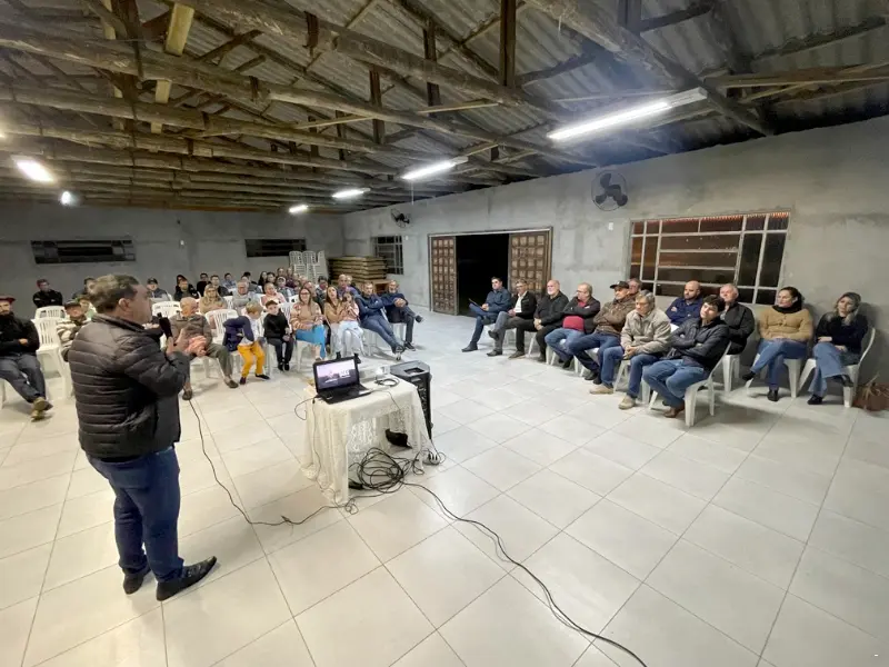 Moradores de Caramujo, localizada no lado leste de Santa Rosa do Sul, se reuniram no salão comunitário para acompanharem o primeiro encontro de prestação de contas do governo municipal relativa aos primeiros anos da atual gestão. Prefeito Almides Roberg da Rosa e o vice-prefeito Pedro D’Ávila da Cunha, acompanhados dos secretários municipais e alguns vereadores, apresentaram alguns dos trabalhos já realizados e também alguns projetos a serem desenvolvidos no município. “Em 750 dias de governo, tivemos a possibilidade de investimento de cerca de R$ 45 milhões em nosso município, que vão desde obras estruturantes a serviços nos mais diferentes setores”, especifica prefeito Almides.