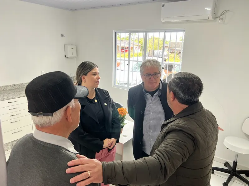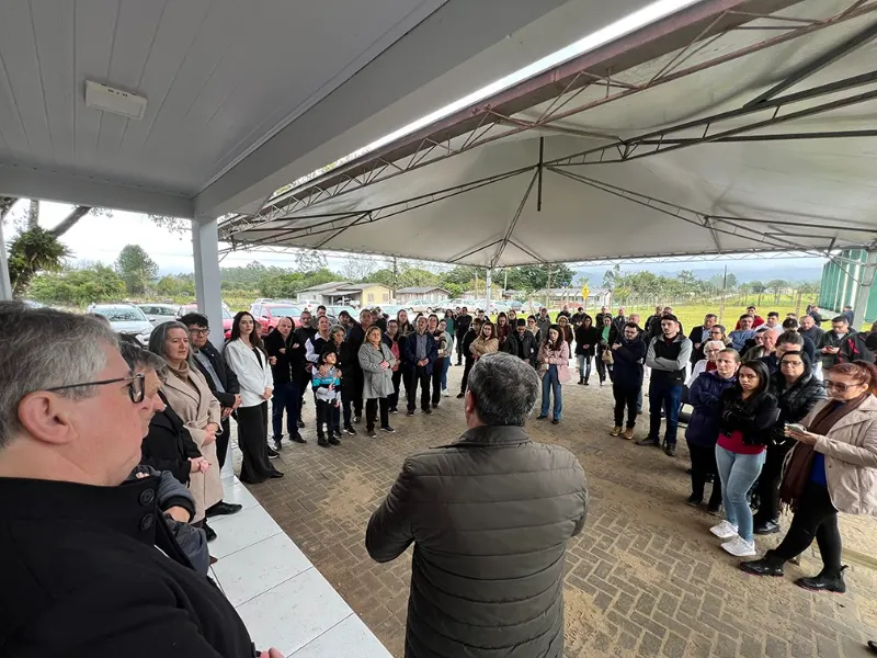 Mesmo sendo uma manhã chuvosa e fria, a última sexta-feira contou com um bom número de cidadãos para acompanhar a reabertura, após reestruturação, do Posto de Saúde de Vila Nova, interior de Santa Rosa do Sul. Recepcionados pelo prefeito Almides Roberg da Rosa e vice-prefeito Pedro D`Ávila da Cunha, vereadores, secretários, direção do IFC (Instituto Federal Catarinense) e o deputado estadual Tiago Zilli participaram de solenidade realizada em frente à unidade. “Vila Nova é a comunidade mais distante da sede de Santa Rosa do Sul. E, assim como fizemos em outras localidades, estamos fazendo investimentos que garantam maior conforto e qualidade de vida às pessoas que aqui residem”, comentou o prefeito Almides.
