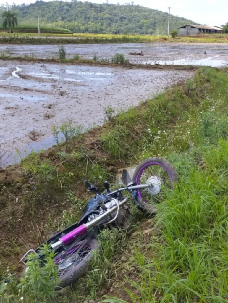 Já, o condutor da CG 150, de 20 anos, foi encontrado em uma ribanceira, próximo a granja de arroz, sendo atendido e conduzido pela equipe do SAER/SARASUL ao hospital de Criciúma.