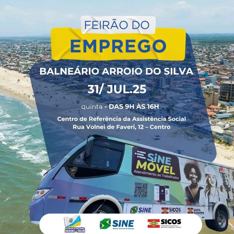 O município de Balneário Arroio do Silva recebe no dia 31 de julho (quinta-feira) uma ação especial do SINE Móvel com diversos serviços que estarão à disposição, principalmente o oferecimento e divulgação de vagas de trabalho. A unidade móvel estará no CRAS, localizado na rua Volnei de Fáveri, nº 12 – Centro; com atendimento das 9h às 16h.