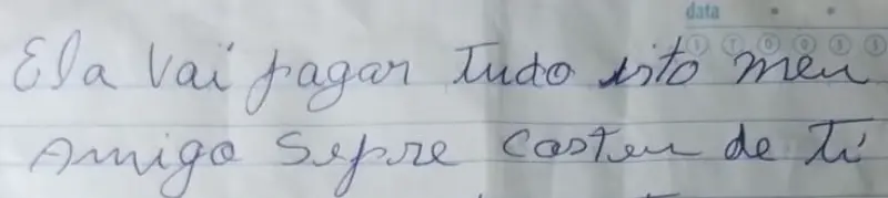 Durante a entrevista, a mulher revelou ter encontrado uma carta de ameaça no pátio de sua casa. O documento, escrito à mão, continha palavras ofensivas e odiosas direcionadas a ela. A vítima entregou a carta às autoridades para que os procedimentos necessários fossem realizados. Parte da carta dizia: “Ela vai pagar por tudo isso, meu amigo!”
